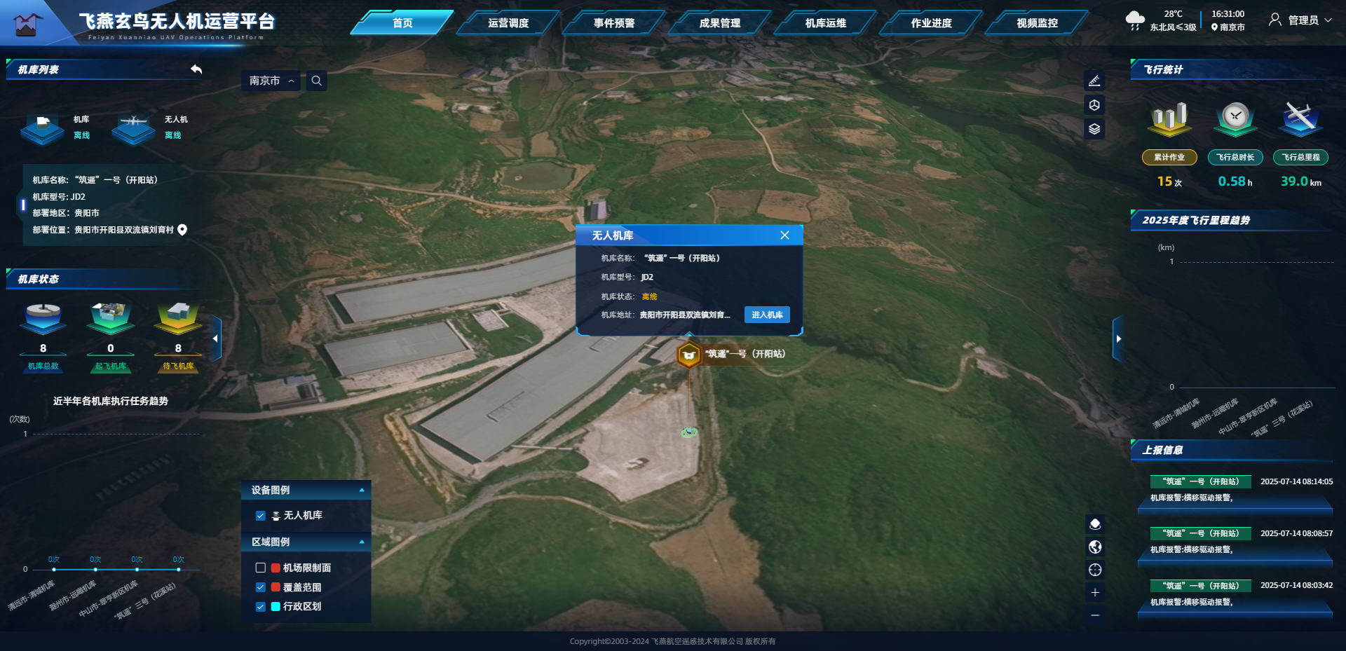 远瞰™Farsight低空无人值守监测系统深度集成玉燕无人机、祥云机库、AI多模态算法及飞燕玄鸟无人机运营平台,实现从任务规划、自动飞行、数据回传到智能分析的全流程无人化作业。玉燕无人机支持搭载多光谱相机、激光雷达(LiDAR)、自研高清全景相机、热红外设备等多种传感器,单台监测范围覆盖3000平方公里,拥有大范围、高频率、低成本的无人机航摄数据采集能力。玄鸟无人机运营平台具备远程任务规划、实时调度与智能分析功能,内置40+种自研AI算法,可实现烟雾、火点、河道漂浮物等目标的自动识别,能对无人机巡检数据进行智能解译与图斑比对,精准识别地表变化、安全隐患等目标,广泛应用于耕地保护、电力线路巡查、水利设施监管、城管违建排查及农林资源监测等领域,将传统人工巡检模式升级为高效的智能化精准治理模式。